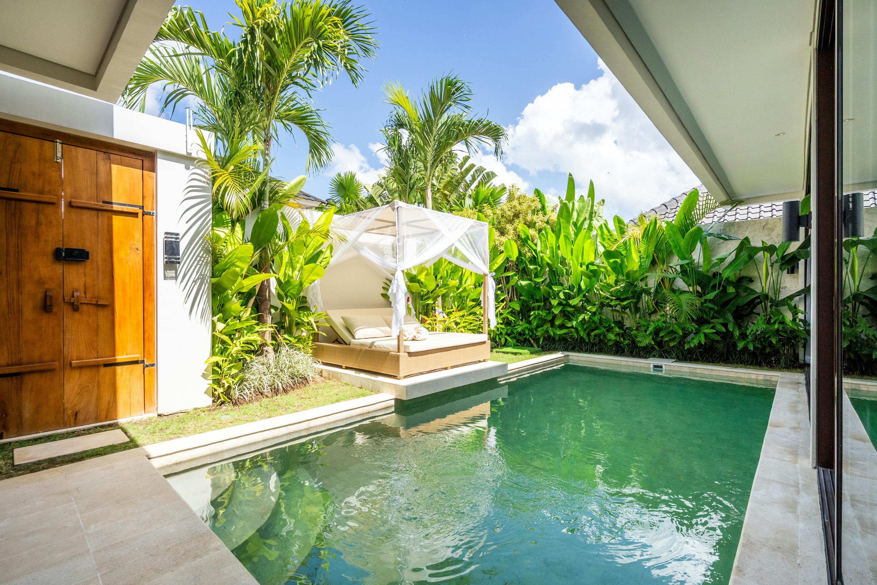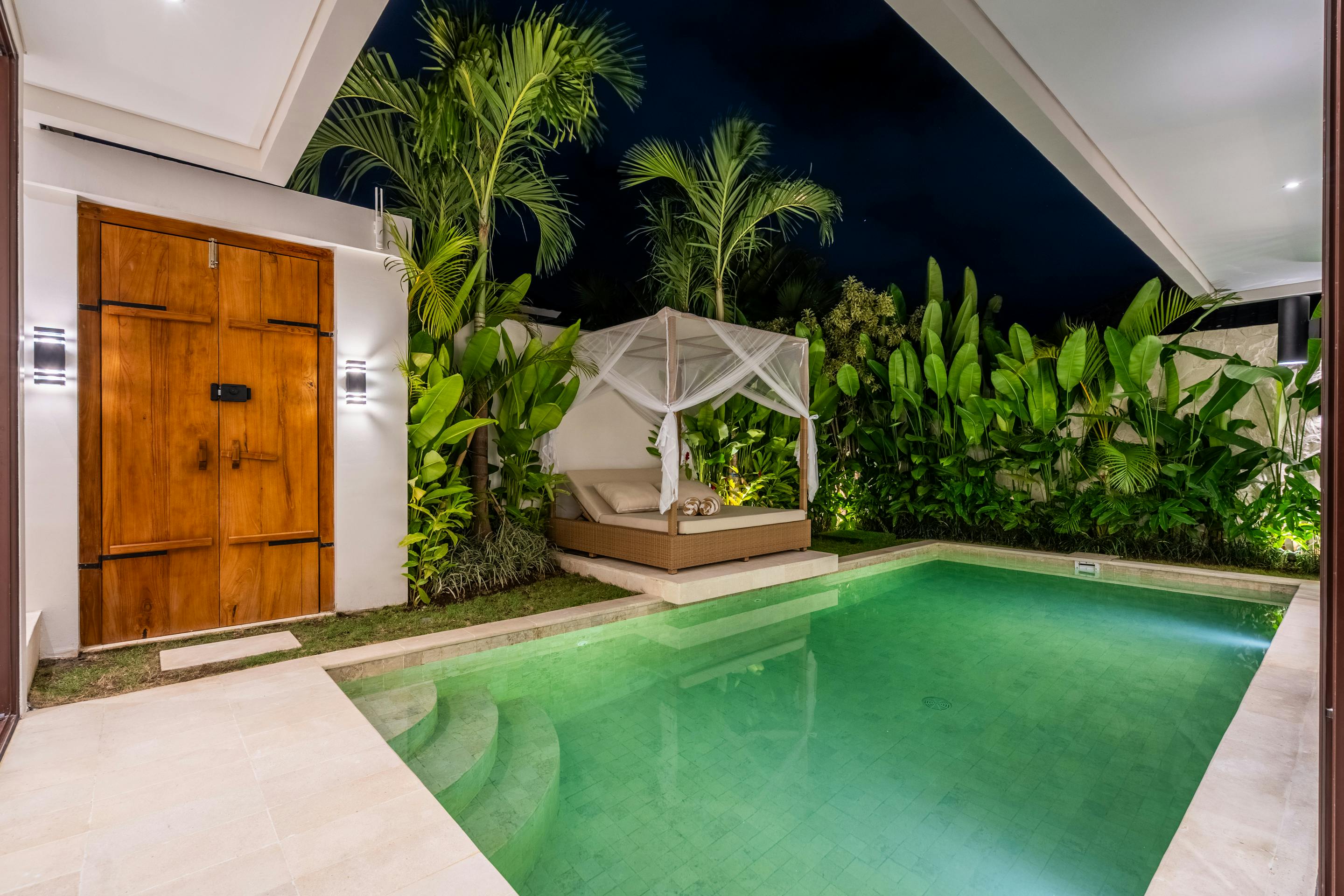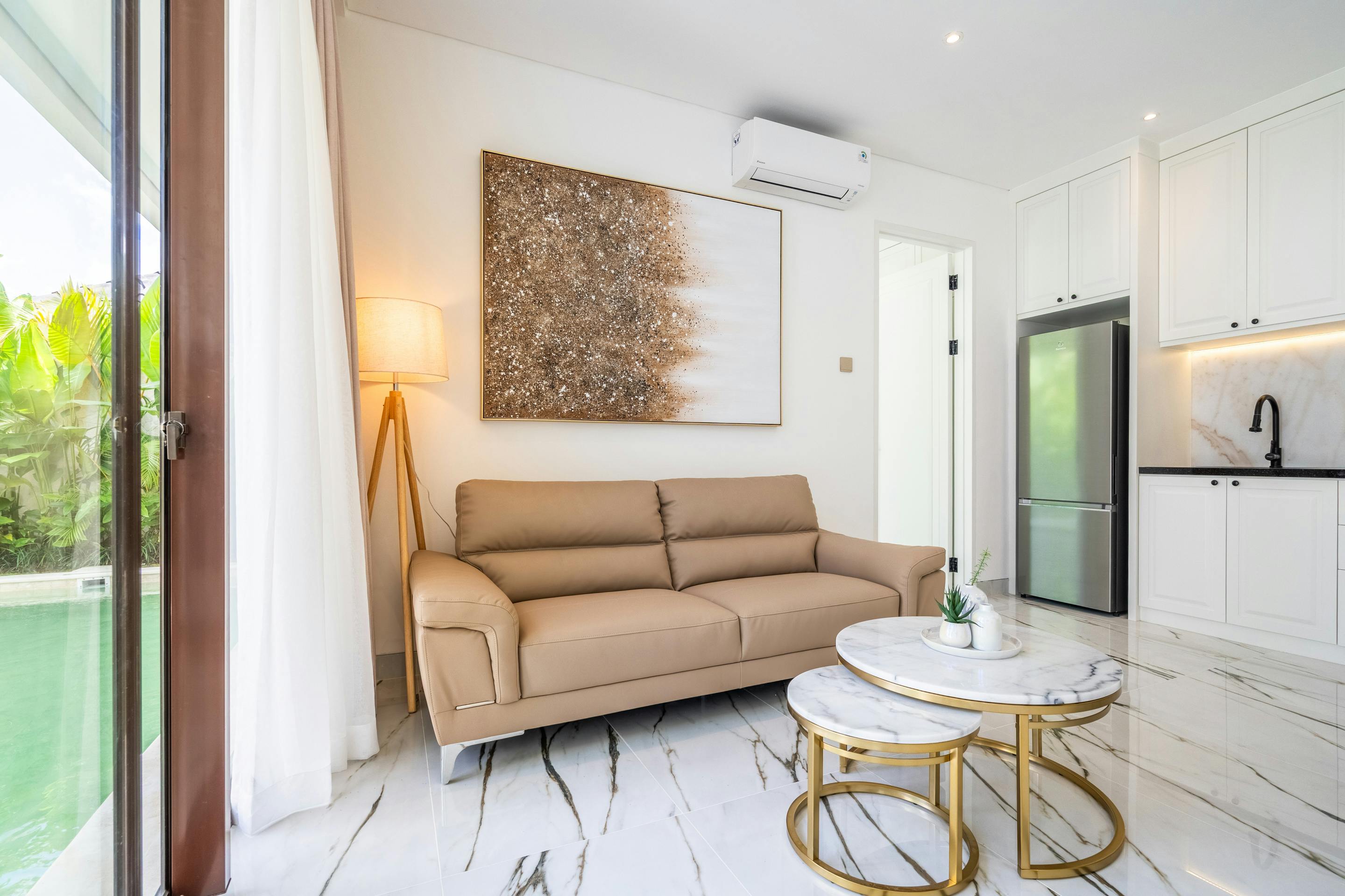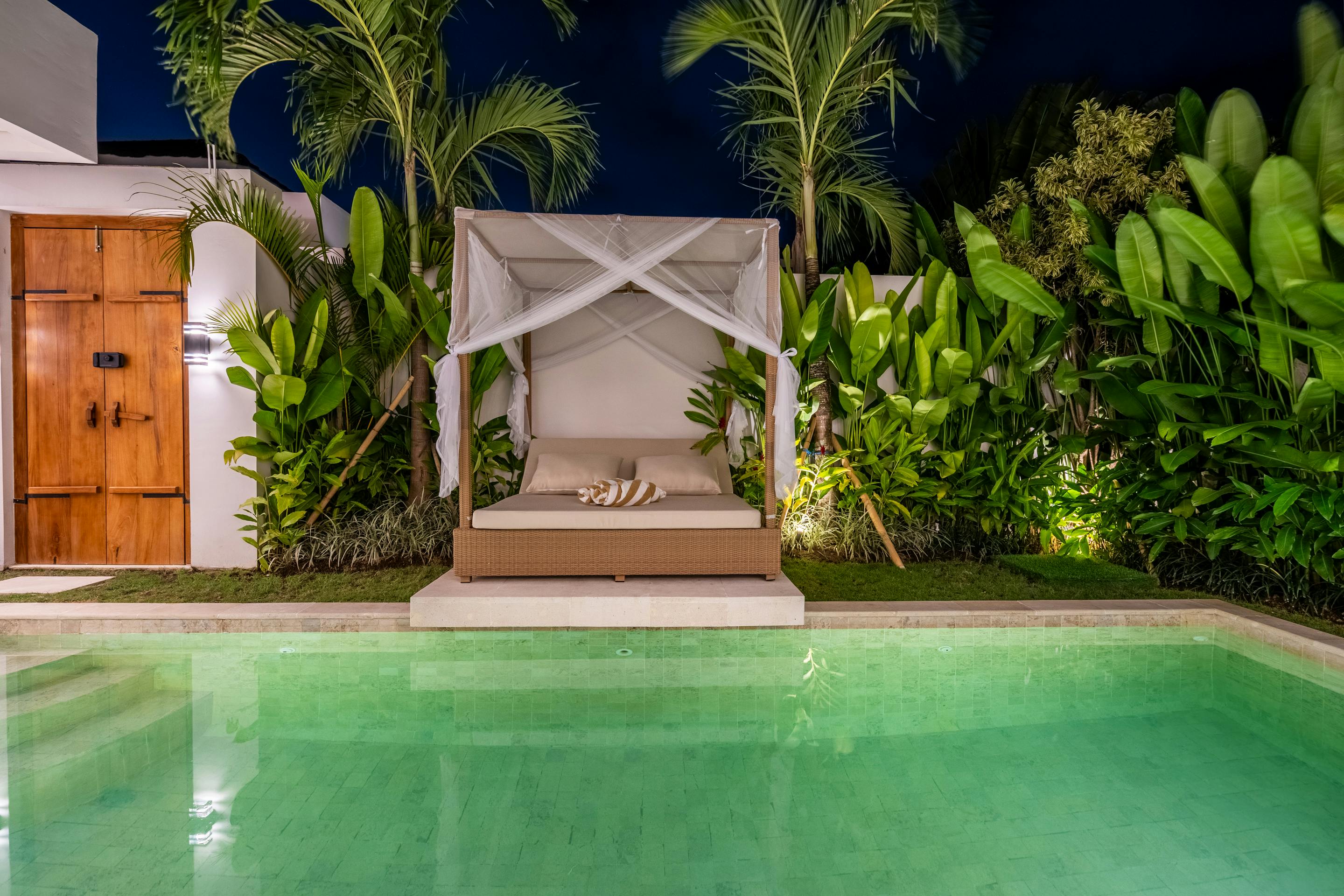 Outside, your private oasis awaits: a generously sized swimming pool accompanied by a serene gazebo lounge area, perfect for morning coffee, afternoon respite, or sunset cocktails. Whether you seek peaceful seclusion or a stylish space to entertain, this villa promises an unforgettable, refined stay in the heart of Canggu.