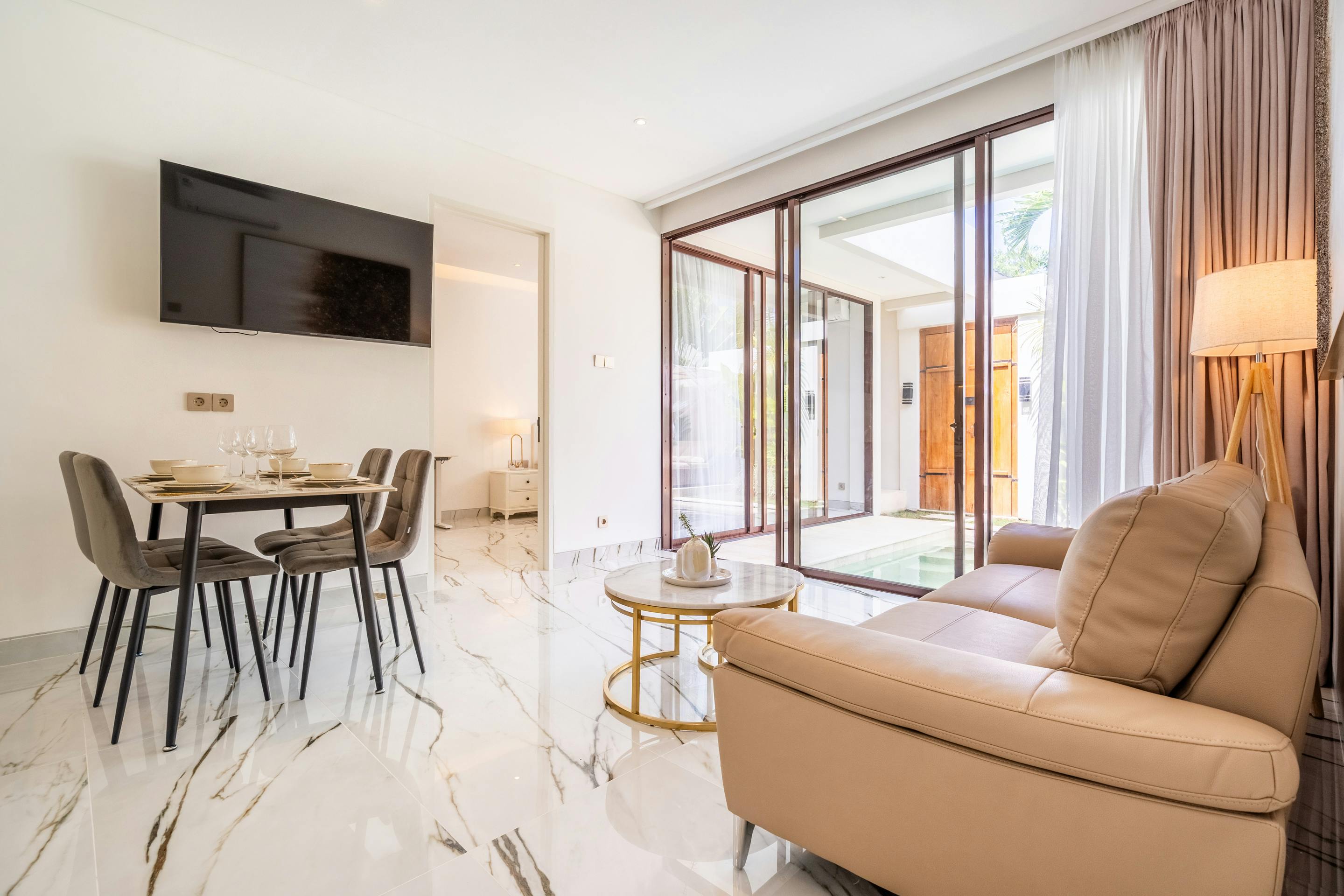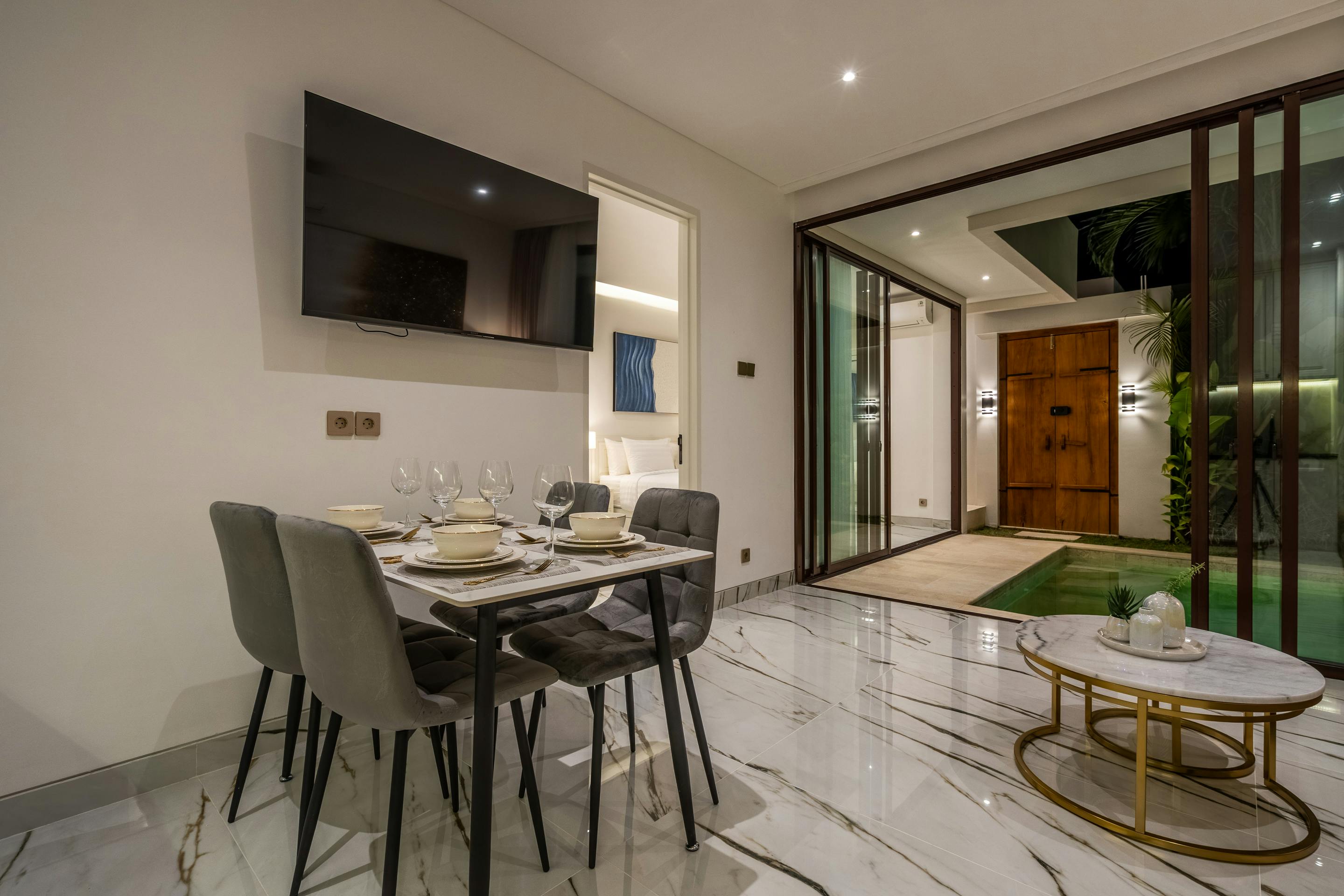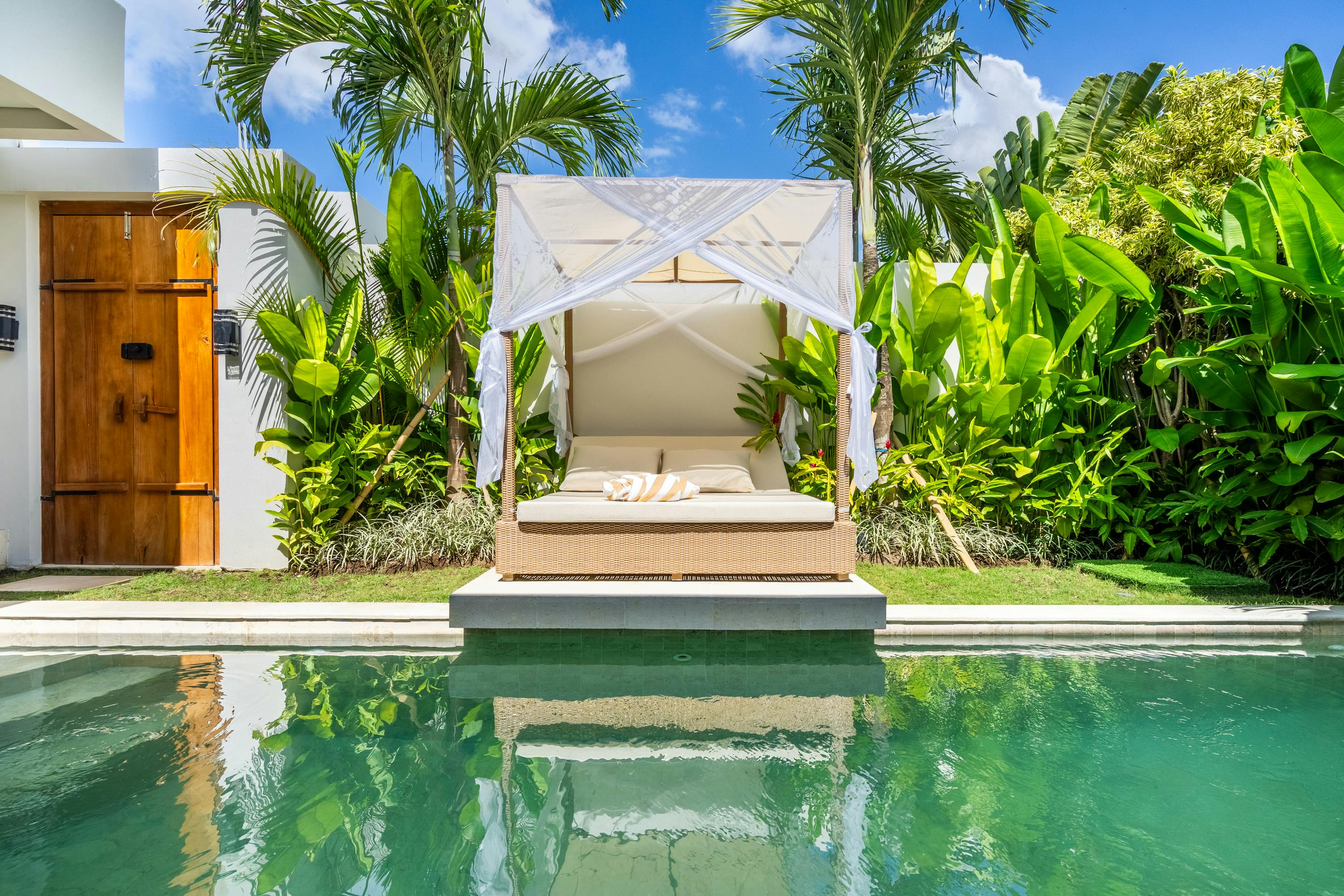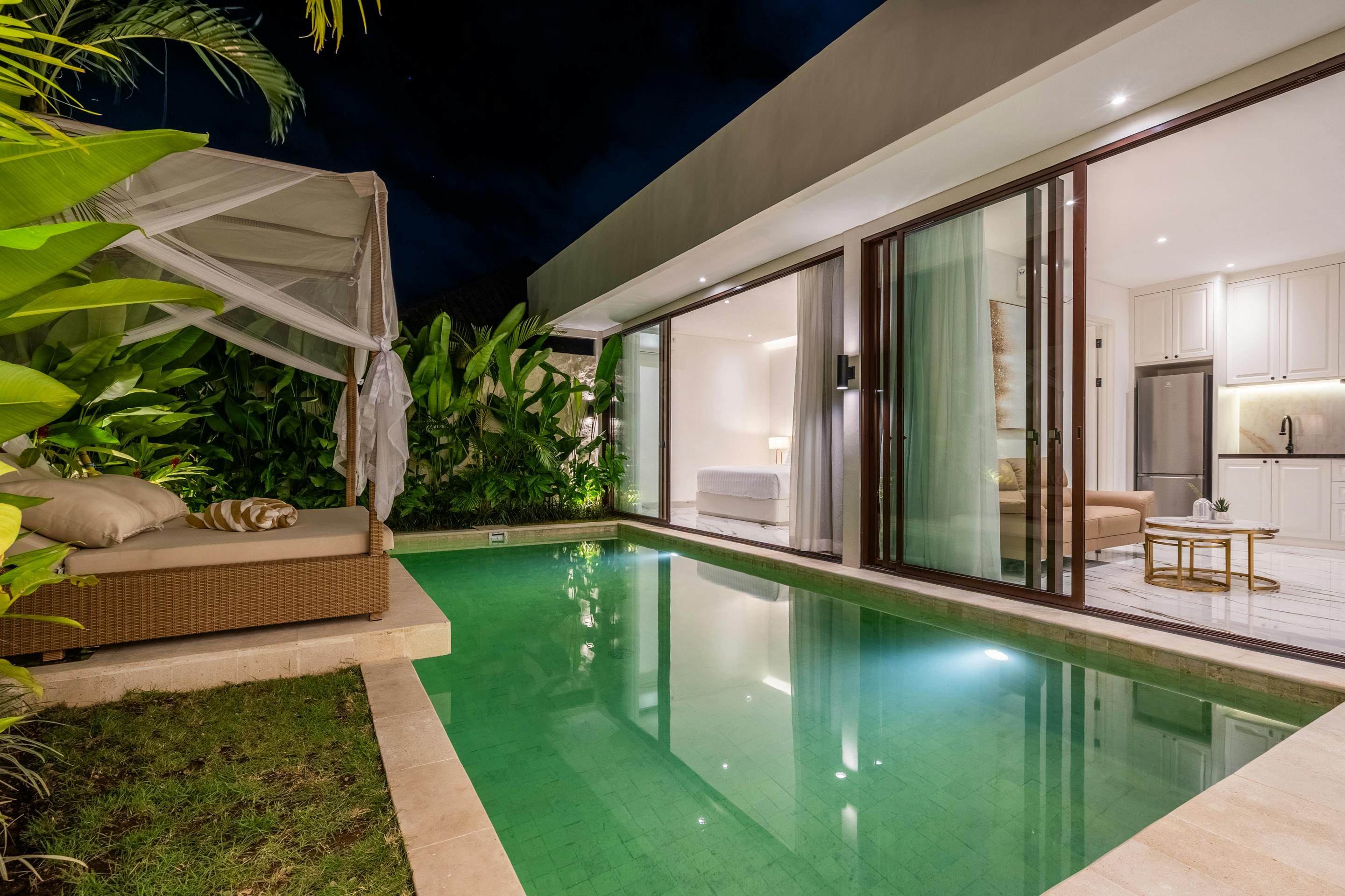 Outside, your private oasis awaits: a generously sized swimming pool accompanied by a serene gazebo lounge area, perfect for morning coffee, afternoon respite, or sunset cocktails. Whether you seek peaceful seclusion or a stylish space to entertain, this villa promises an unforgettable, refined stay in the heart of Canggu.