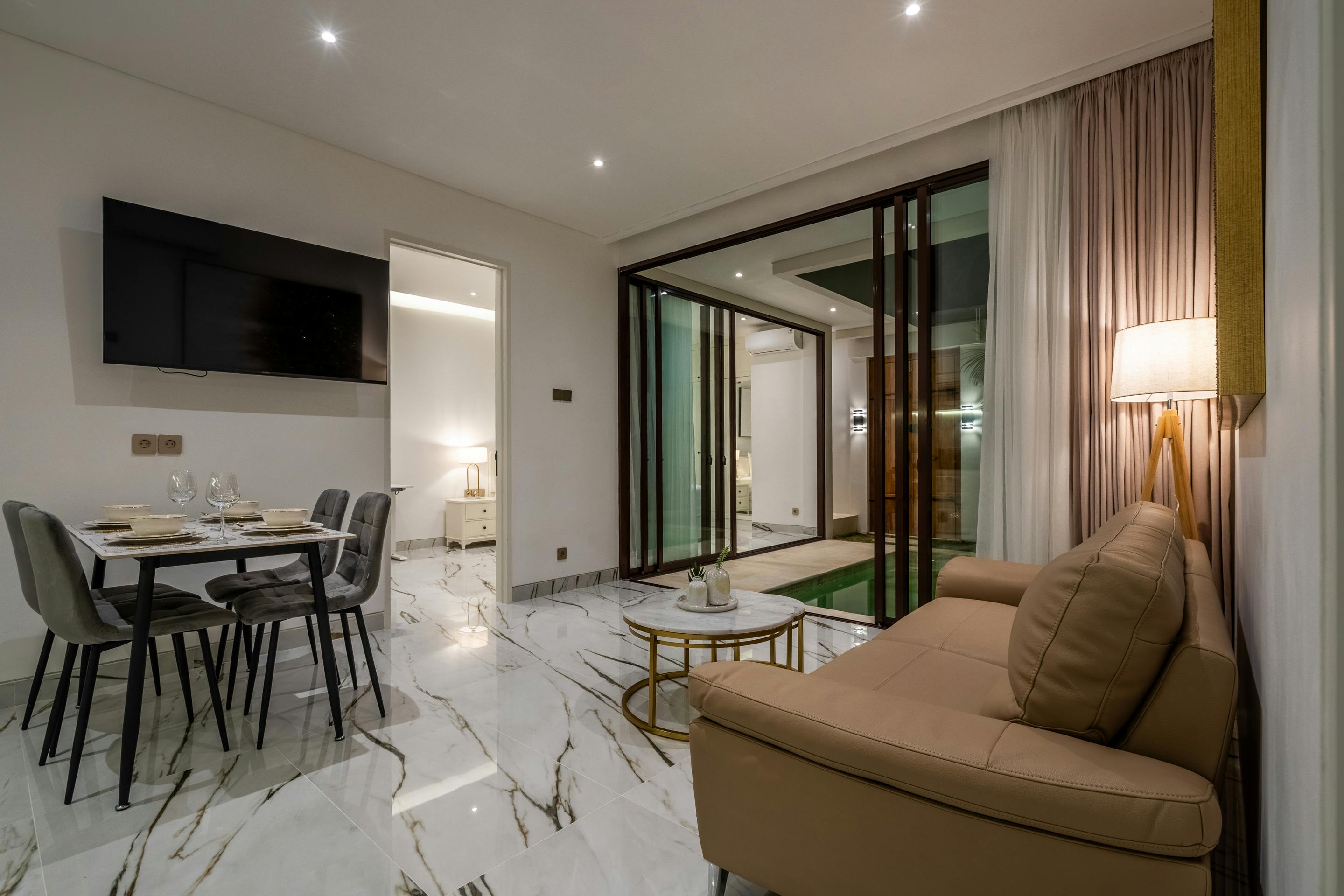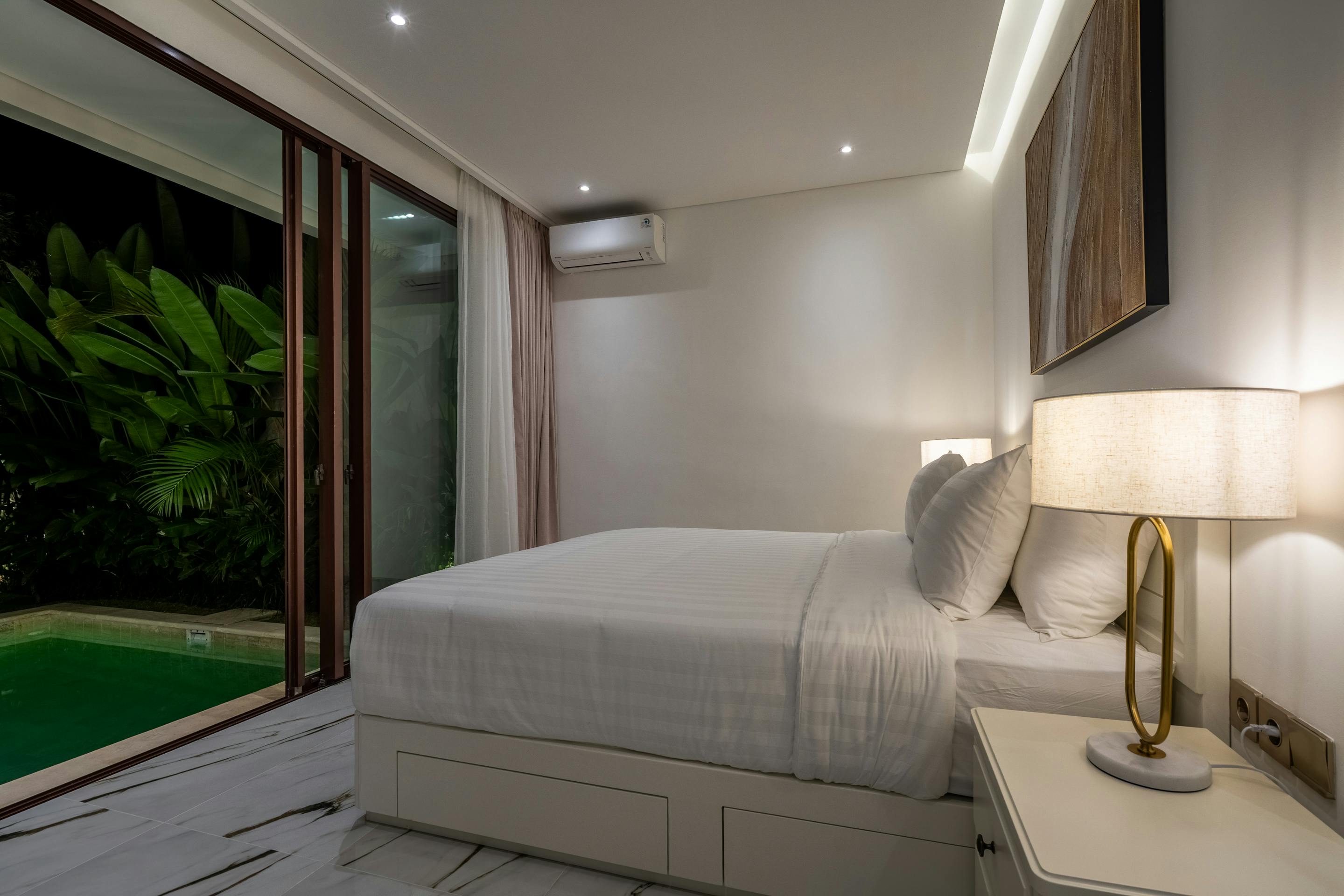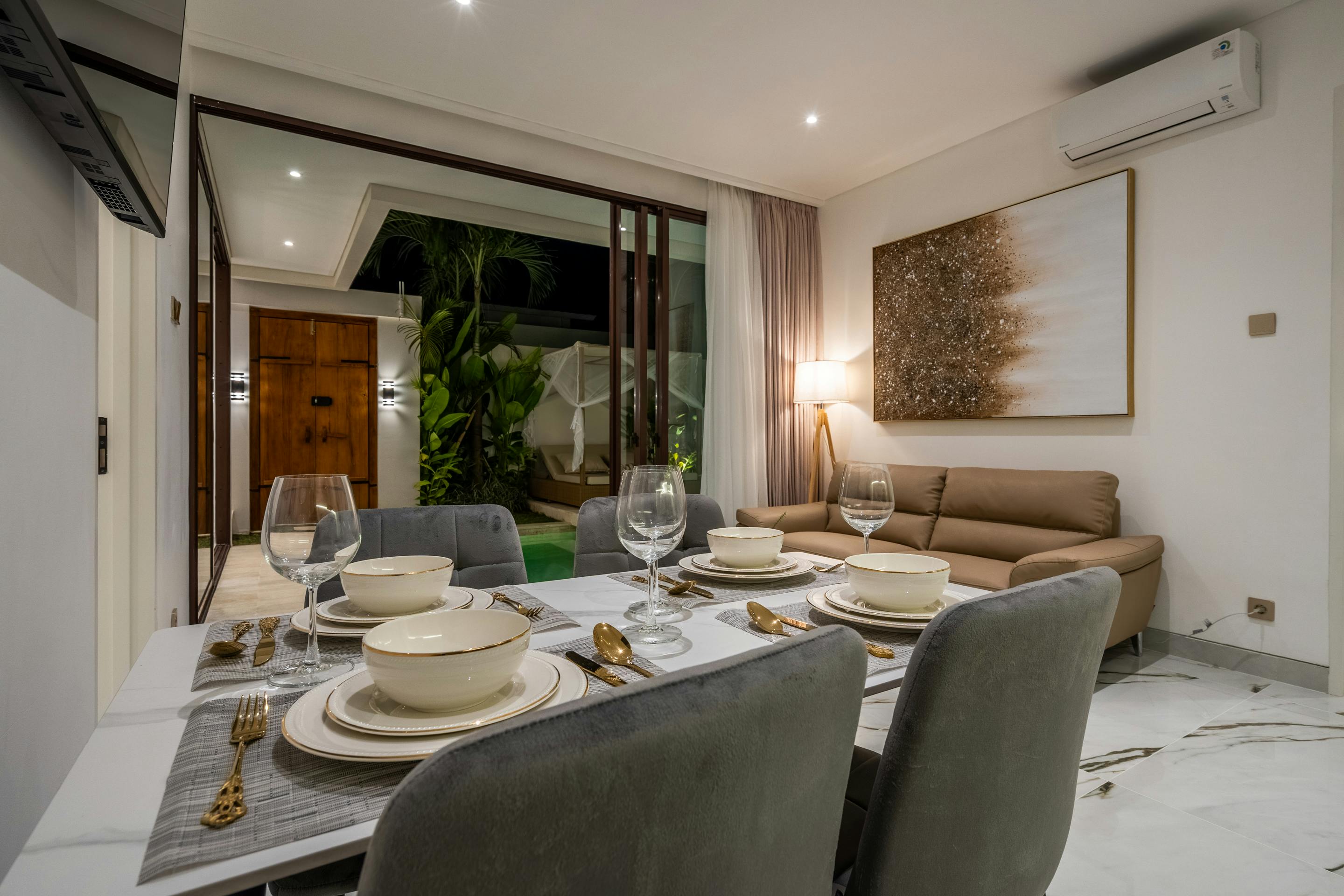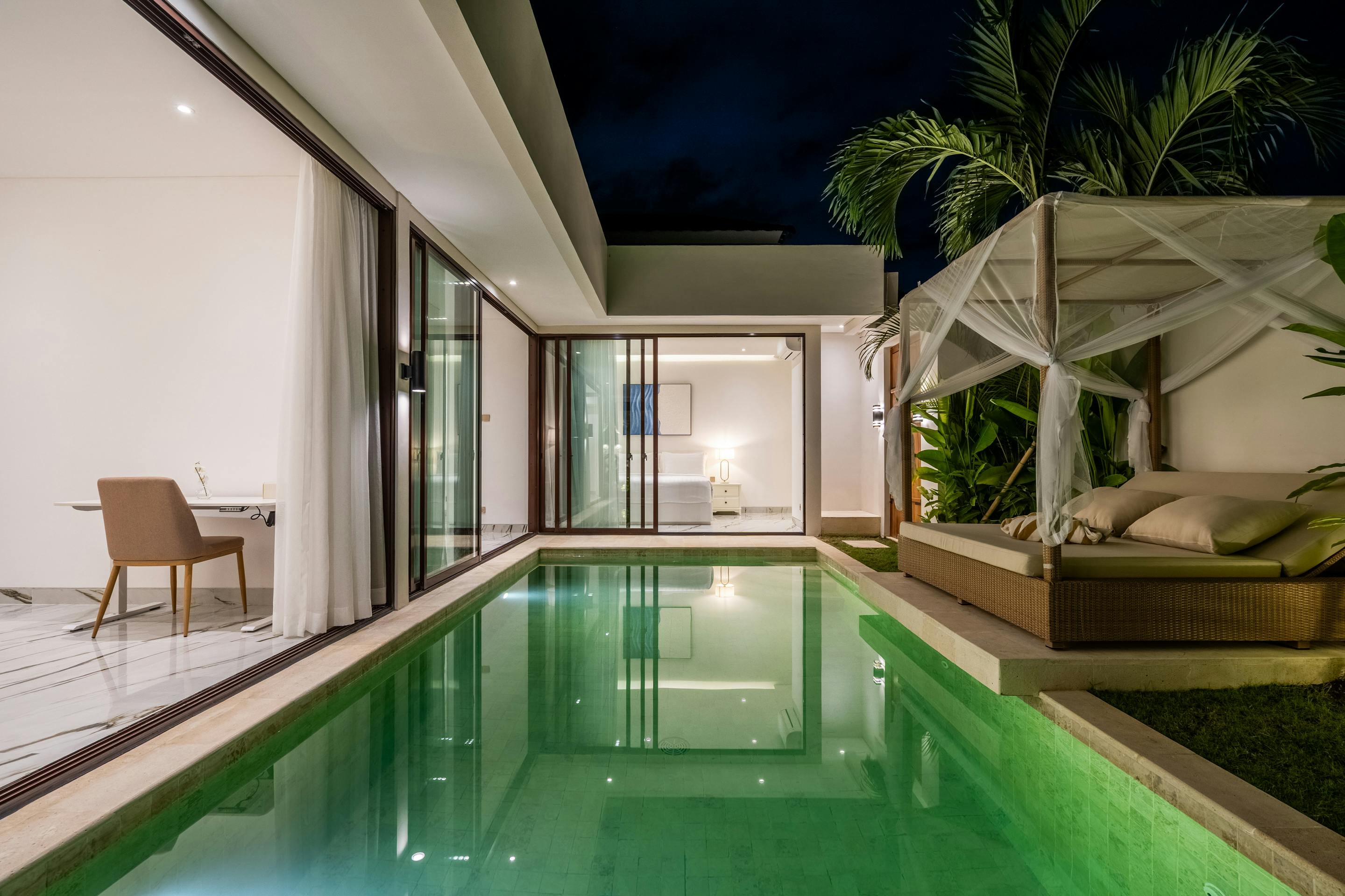 Outside, your private oasis awaits: a generously sized swimming pool accompanied by a serene gazebo lounge area, perfect for morning coffee, afternoon respite, or sunset cocktails. Whether you seek peaceful seclusion or a stylish space to entertain, this villa promises an unforgettable, refined stay in the heart of Canggu.