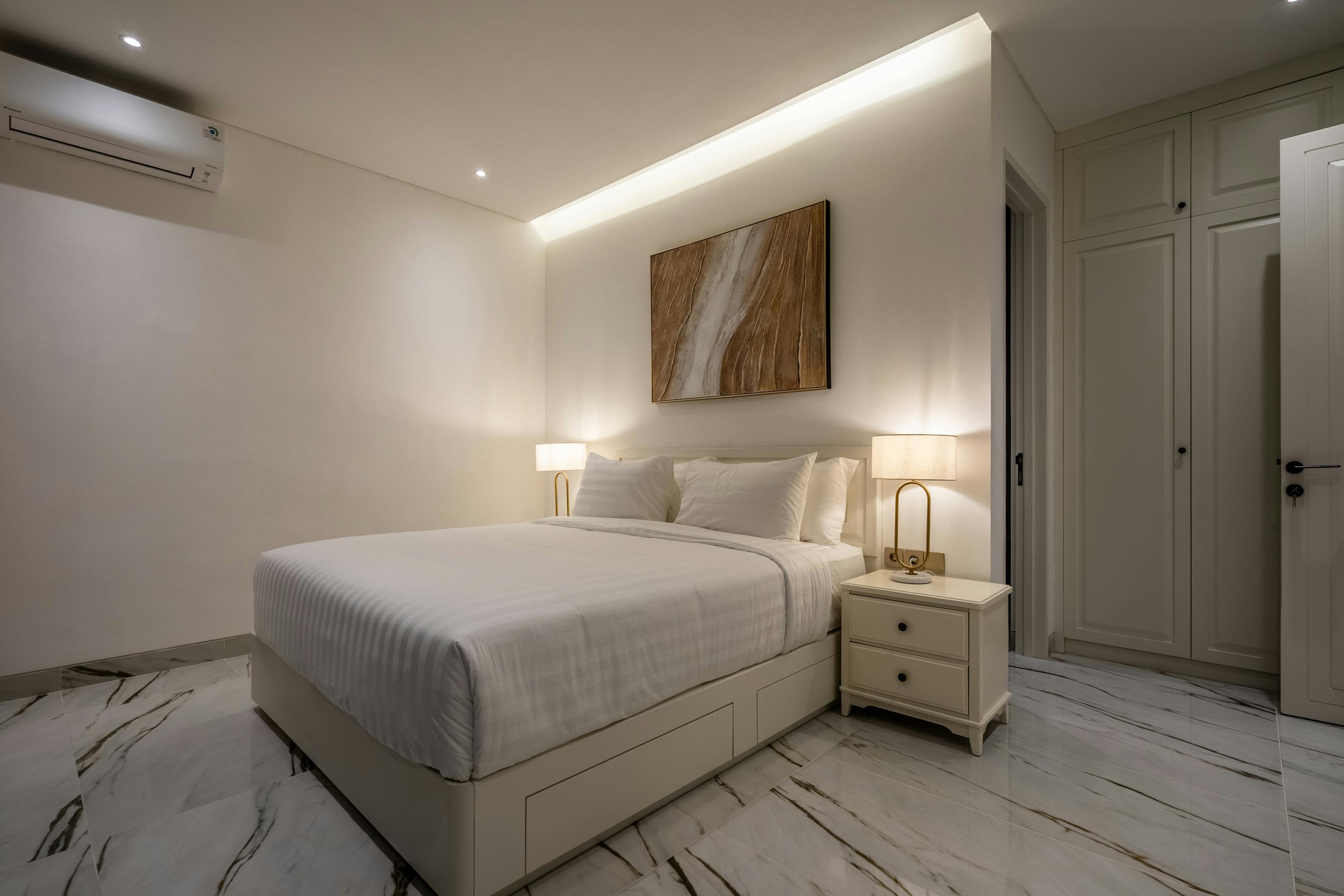 Each bedroom offers a private sanctuary with elegant en-suite bathrooms — including a master suite with a luxurious bathtub designed for indulgent relaxation. Evenings can be spent enjoying your favorite films on the large Sony Google TV or unwinding outdoors in the lush landscaped garden.